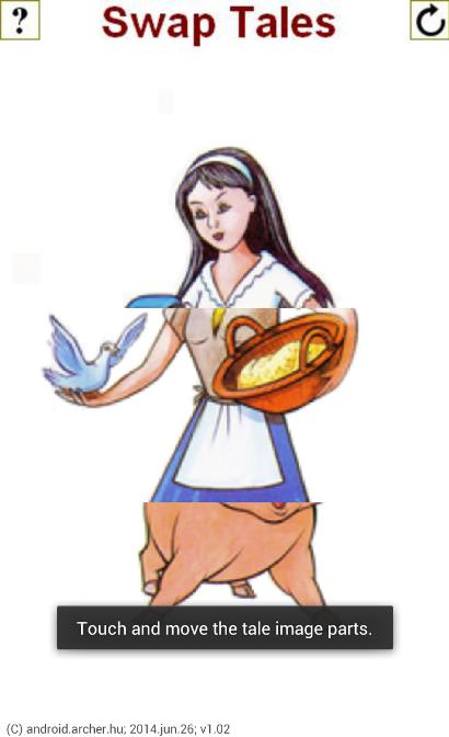Aplikasi ini berisi 16 karakter dongeng. Bagian kepala, batang tubuh, dan kaki dapat diubah untuk yang berbeda. Tombol kanan atas menghasilkan karakter dongeng acak.