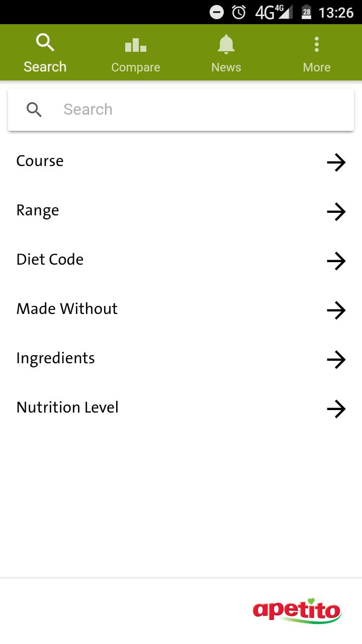 Nutridataを使用すると、Apetito製品を検索、フィルタリング、表示、比較できます。