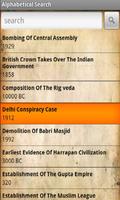これがあなたの指先でHistory of Indiaです!先史時代から2008年まで!日付または名前でイベントを検索します。イベントや日付を検索することもできます。プラッシーの戦いやパニパット戦争の日付を覚えておく必要はもうありません!全体の歴史は、すべてのイベントの簡潔な説明で携帯電話に届きます。