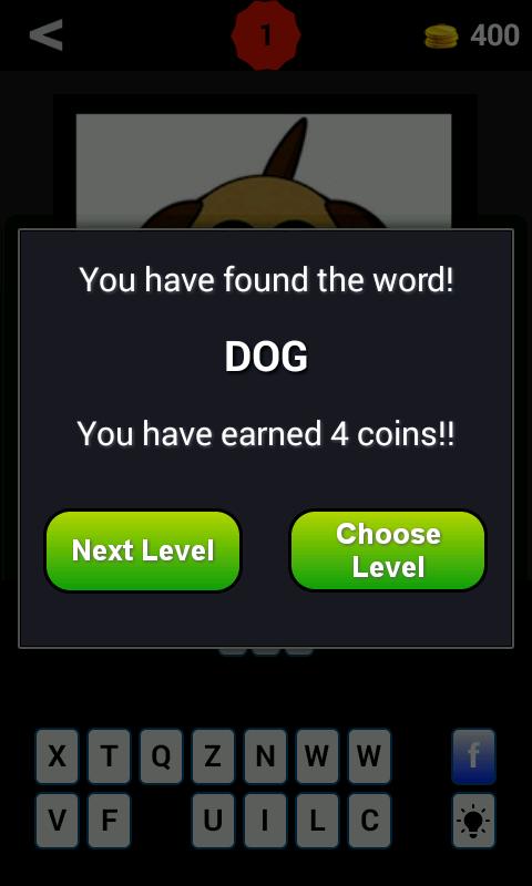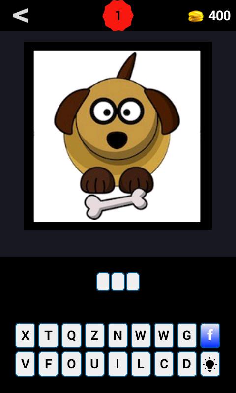 私たちが見せている写真の後ろに隠れている単語を推測し、トラックを使用して単語の文字を発見したり、誤った文字を削除したりします。
