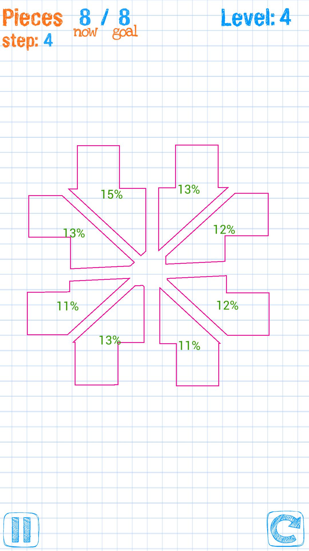 Cut and Slice形状を等しい部分に分割するように挑戦します。この説得力のあるゲームは、レベルアップするにつれてますます難しくなります。あらゆるレベルで正確にCut and Sliceできますか?