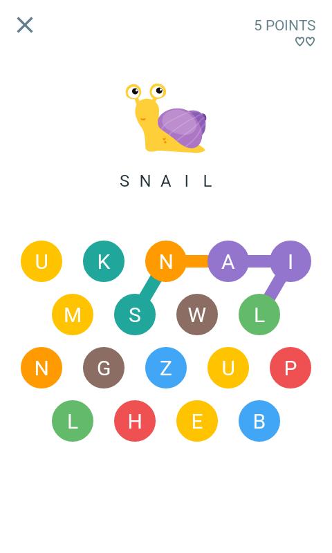 パズルは簡単に始まり、より長い単語とより多くの選択された文字でより困難になります。また、専門家はタイマーモードによって挑戦される場合があります。