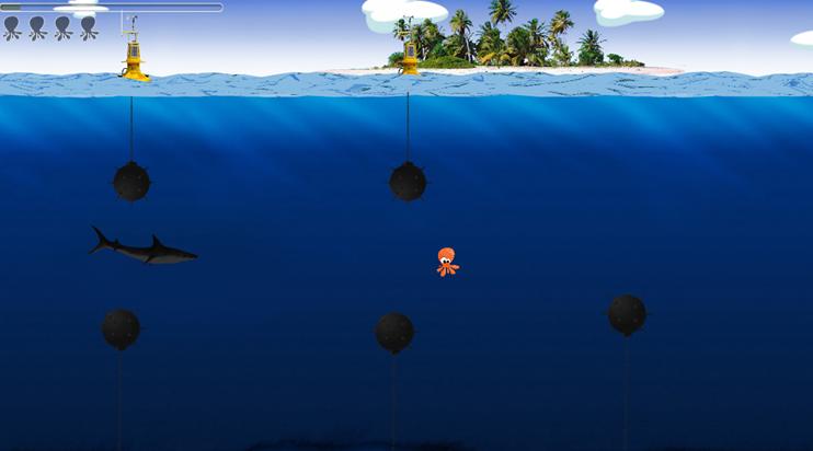 サメがハンターから逃げ、安全な水域で彼を導くのを手伝ってください。