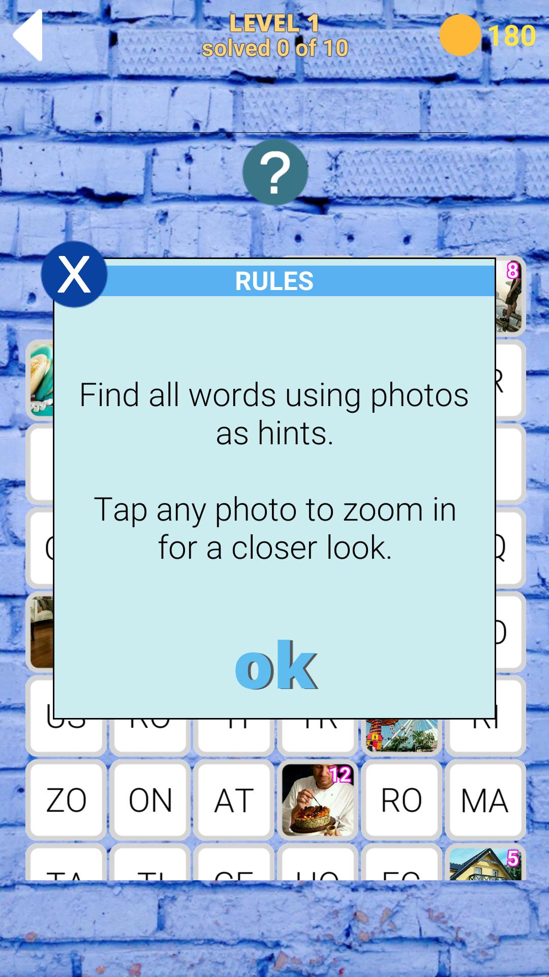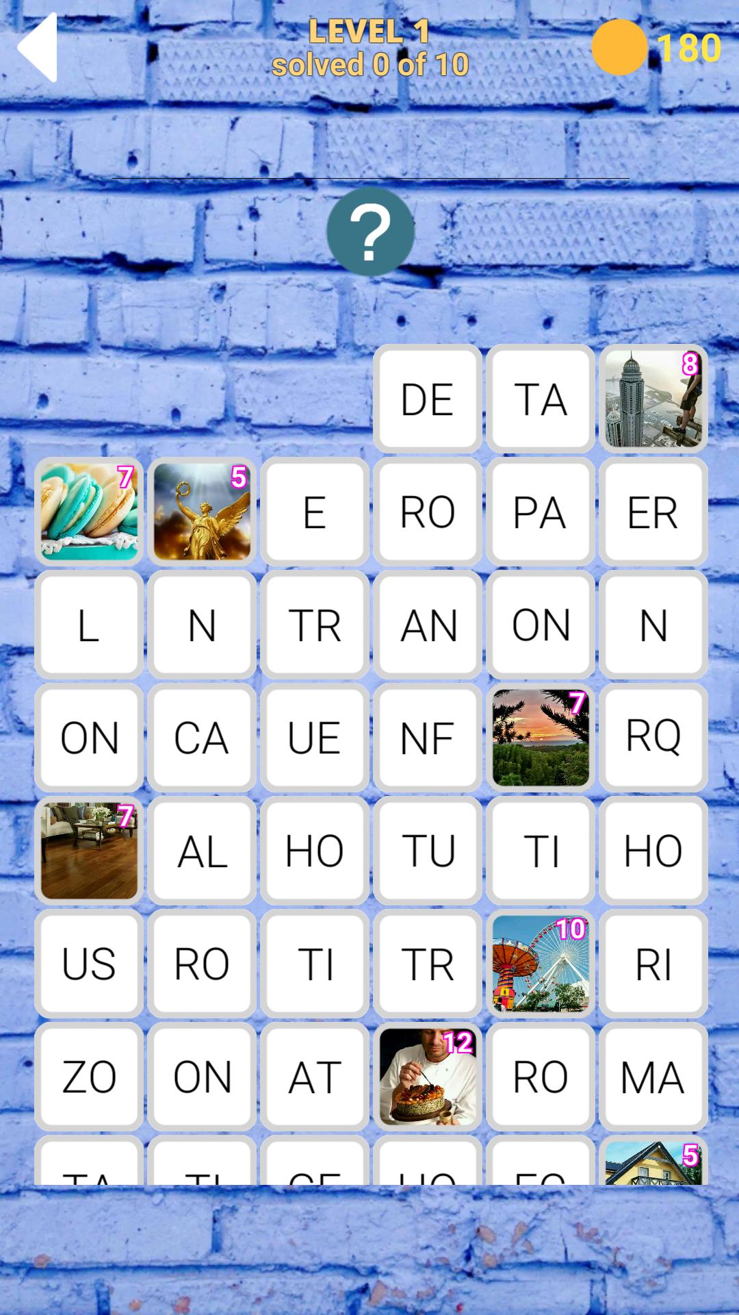 게임 프로세스는 두 가지 유형으로 나뉩니다. 각 레벨은 20 단어로 구성되며, 게임의 교훈은 사진으로 나뉘어져 있으며 음절로 나뉘어있는 답변은 사진을보고 음절에서 단어를보고 구성하여 사진을 클릭하면 사진을 늘릴 수 있습니다. 이 멋진 게임은 친구, 가족 및 친구 회사에서 플레이하도록 만들어졌습니다. 영어, 프랑스어, 독일어, 러시아어, 이탈리아어 및 포르투갈어에서 선택하십시오.