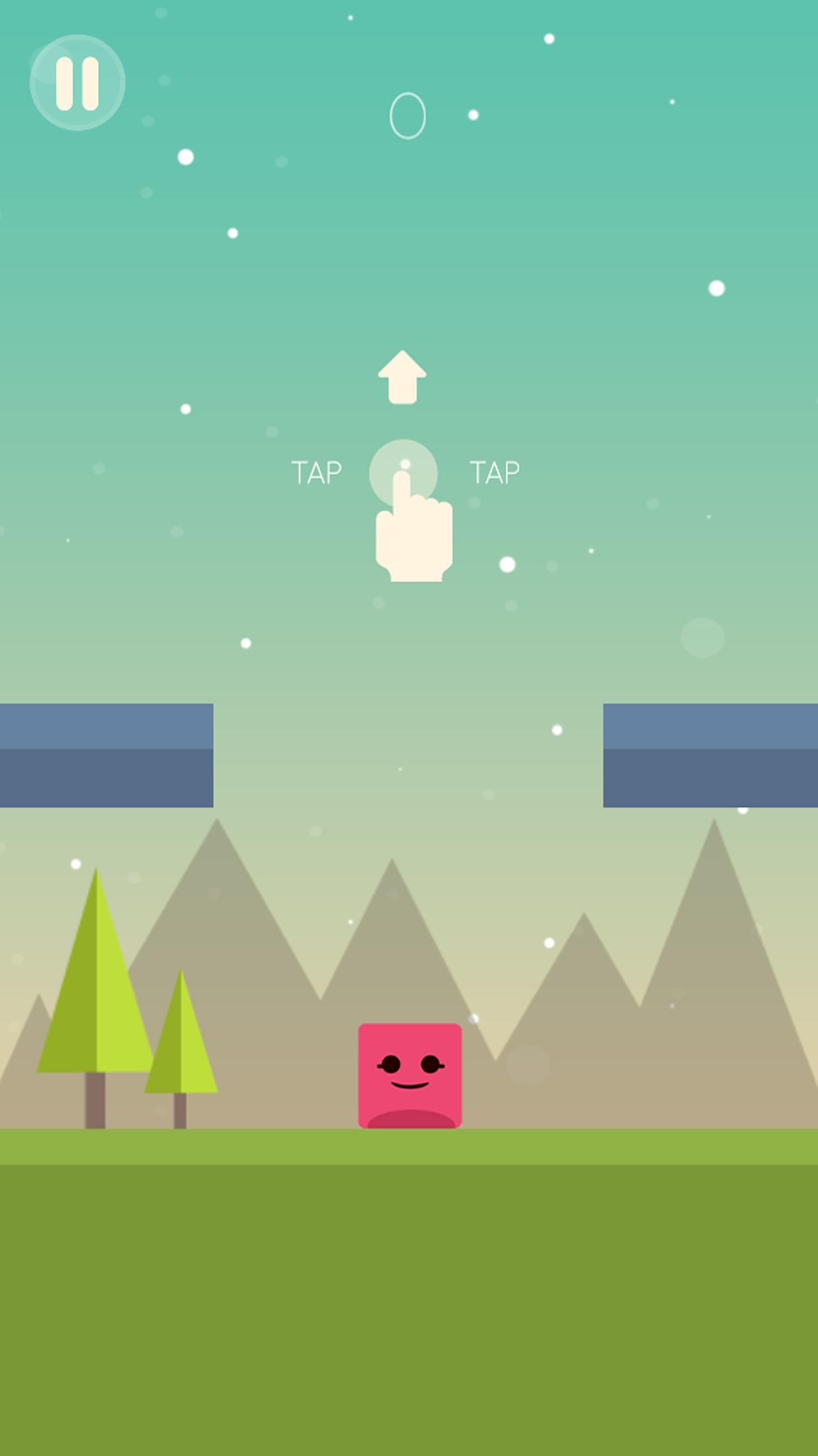 > 화면을 탭하여 분홍색 사각형을 튀고 슬라이딩 기둥에서 튀어 오릅니다.