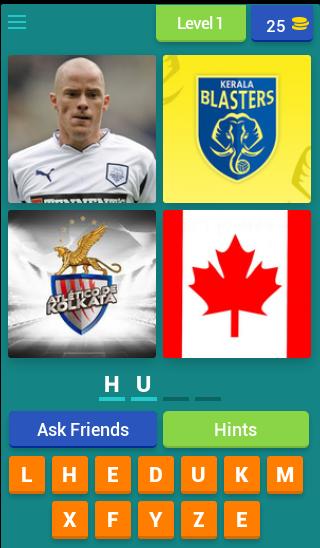 각 레벨의 4 개의 이미지를보고 인디언 슈퍼 리그 축구 선수들이 각 레벨을 통과하도록 추측하십시오.