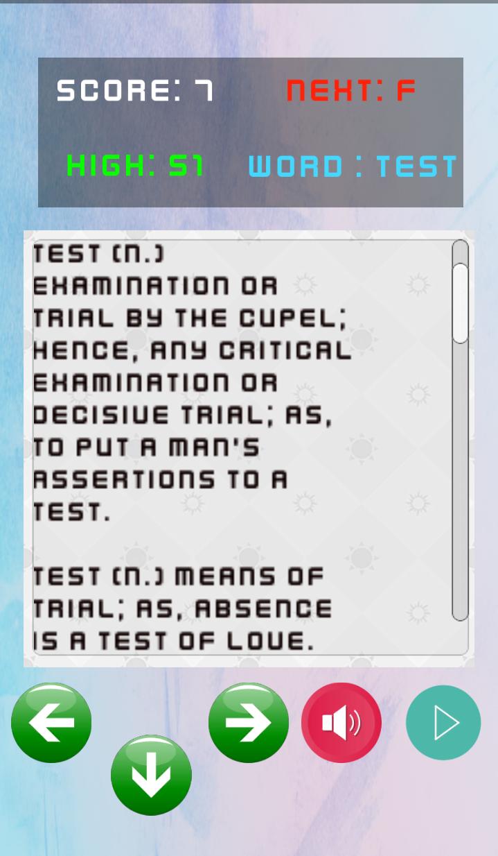 유효한 단어를 만들기 위해 떨어지는 글자를 정리해야합니다. 게임은 당신이 떨어지는 글자와 유효한 다른 단어를 생각해 낸 방법에 관한 것입니다.