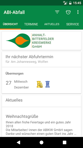 O aplicativo também oferece atualizações do site do ABIKW, bem como acesso direto ao formulário de contato e outras informações solicitadas sobre o descarte de resíduos em Anhalt-Bitterfeld.