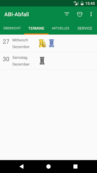 Uma olhada no aplicativo ABI Waste fornece informações sobre quando o recipiente de resíduos residuais e os recipientes de resíduos orgânicos são esvaziados quando a bolsa amarela pegou ou a lixeira de reciclagem é esvaziada e ao manter o lixo perigoso em sua área. A cidade está comissionando o aplicativo (mas pode ser alterada a qualquer momento, se necessário).