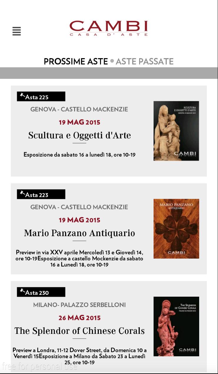 Aplicação dedicada aos clientes da casa de leilões Cambi.