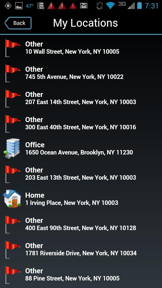 • Endereços recentes baseados em GPS usados ou reservas aeroportuárias