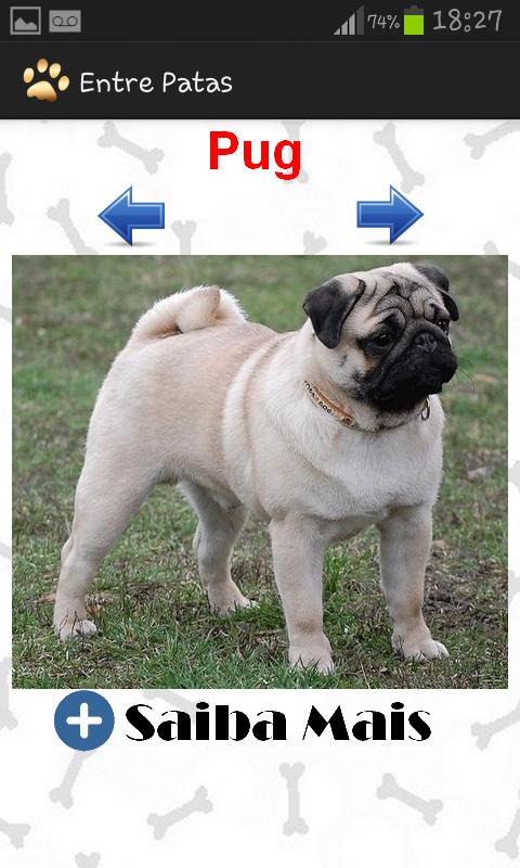Entre Patas - Conheça mais o seu animal de estimacão, seja ele um cachorro ou um gato, através do nosso aplicativo você vai ficar por dentro das principais características que o seu cao ou gato possui e também vai conhecer varias racas de caes existentes pelo mundo todo.
