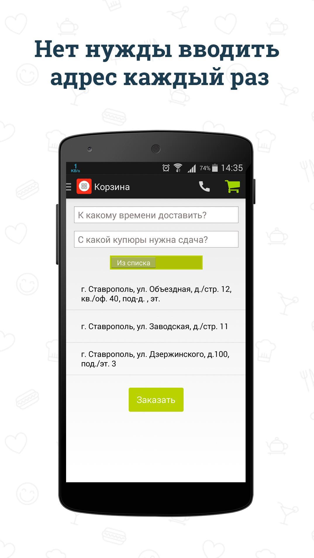 * Não há necessidade de entrar no endereço manualmente em cada ordem - o aplicativo se lembra do endereço do qual as últimas ordens foram feitas