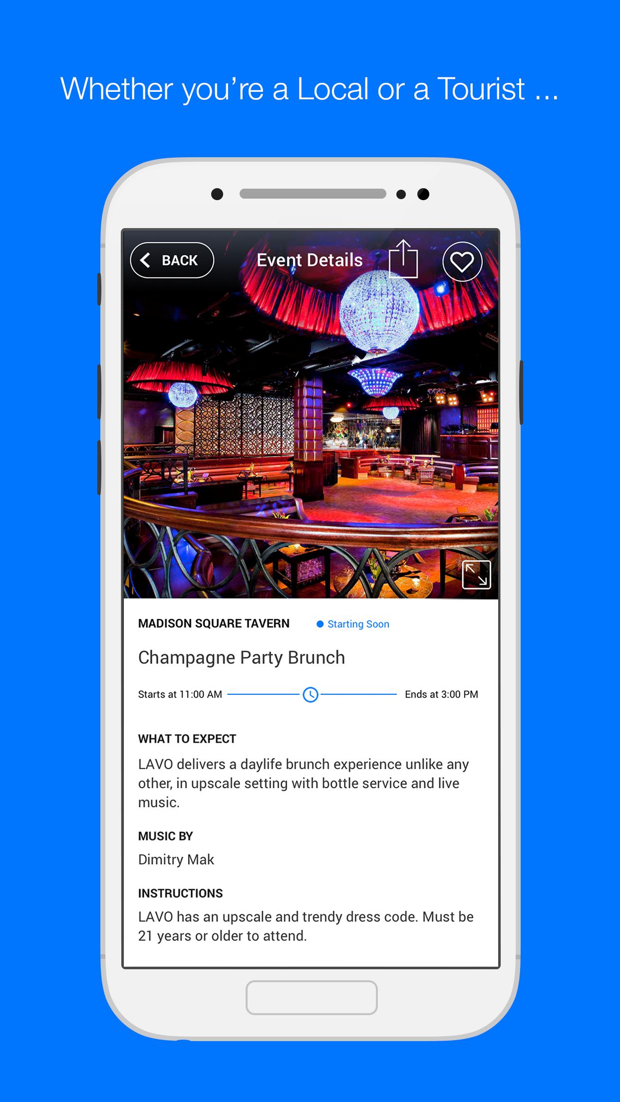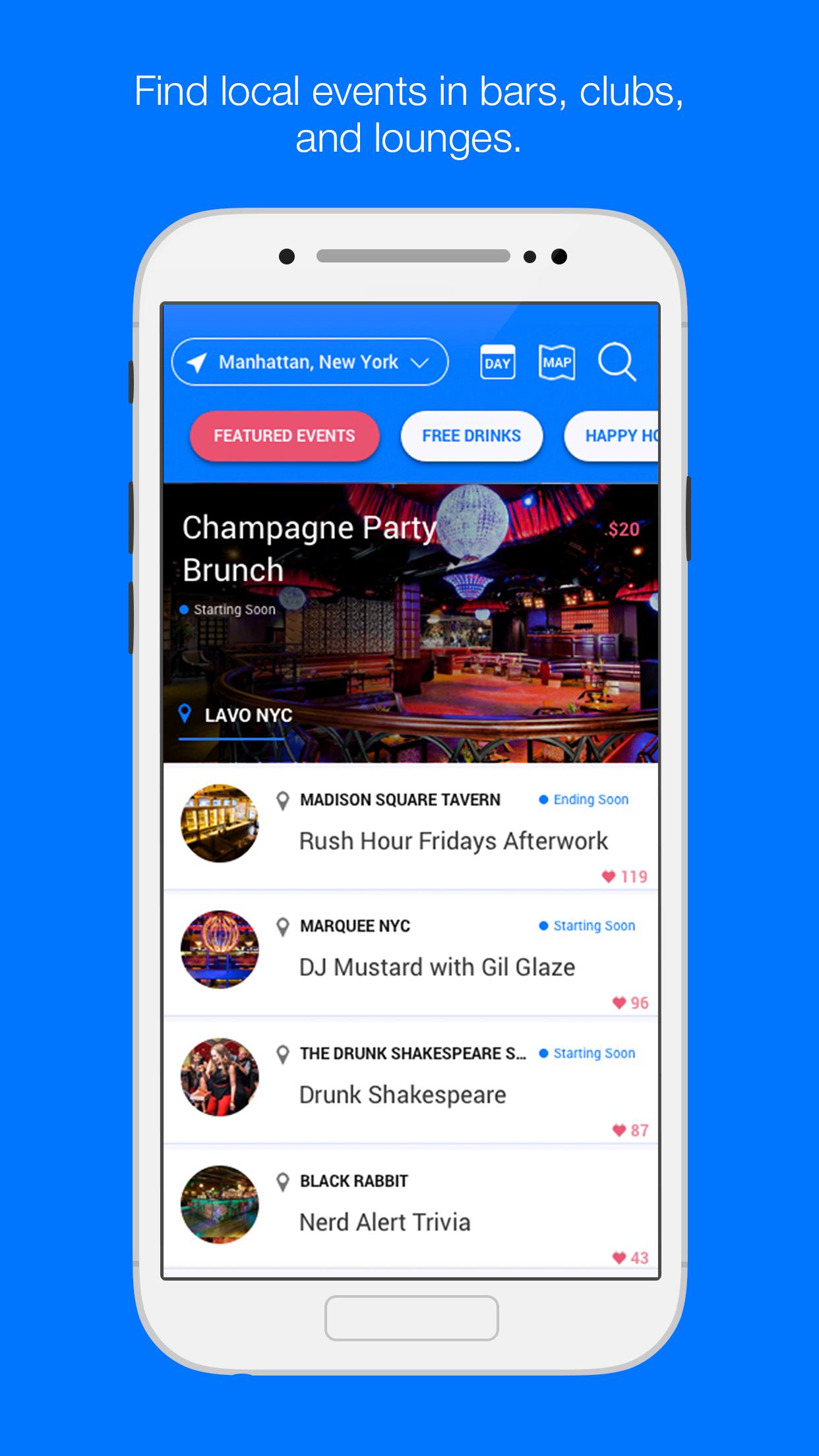 Hagtap conecta você a eventos locais da vida noturna, como happy hours, música ao vivo, apresentações de comédia e muito mais.