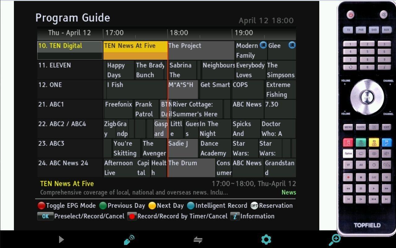 iTMSRemote for Topfield é um cliente Android do TMSRemote Tap que é executado no HD Topfield PVRS, principalmente encontrado na Austrália e na Europa. Ele não funciona com os campos de SD mais antigos como o 5000 e 6000, nem com as máquinas HD de primeira geração que não suportavam torneiras (como as 7700, 7000, 7100pvrt etc.)