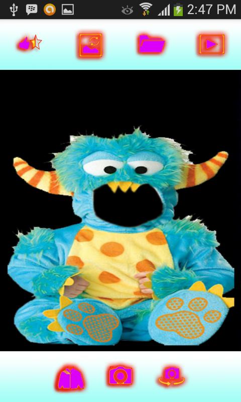 Ver bebês usando trajes de frutas ou animais é um prazer. Bebês fofos com roupas fofas farão com que os pais o vejam. Mas nem todos os bebês podemos usar roupas fofas. Com este aplicativo, você não precisa forçar seu bebê a usar a fantasia fofa. Este aplicativo facilita para você ver seu bebê usando uma fantasia fofa e união.