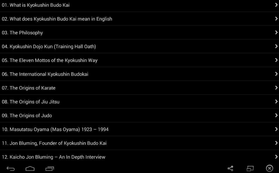 Este aplicativo foi compilado nas técnicas e filosofias dos estilos de Kyokushin Budo Kai para melhorar seu entendimento como praticante de Kyokushin Karate.