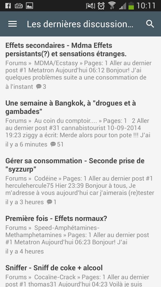 Com este aplicativo, você pode consultar todos os novos recursos do Psychoactif de relance, novas discussões sobre fóruns, novos blogs, notícias sobre drogas, peças escolhidas da comunidade ou o blog Relatório de viagem sobre novos medicamentos sintéticos, ou o blog UN Monde, cem medicamentos realizado em Lemonde.fr by Pierre Chappard, presidente da Psychoactif e Jean-Pierre Coustort.