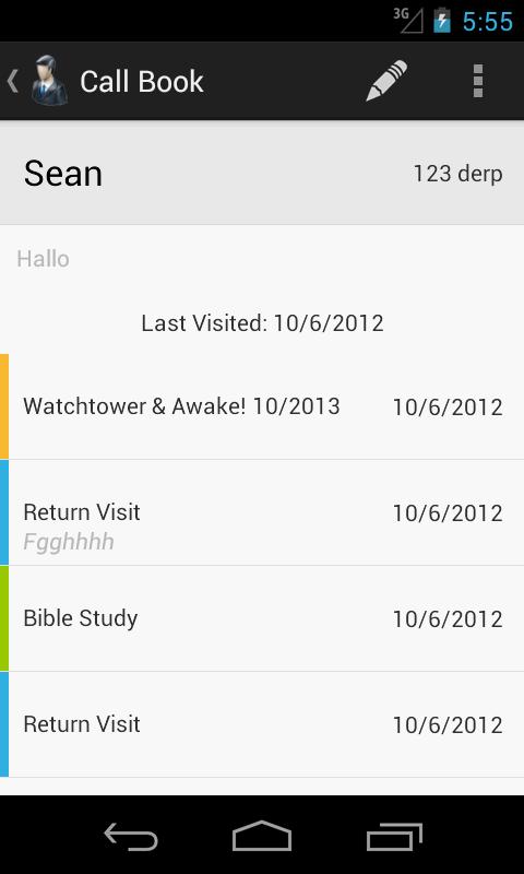 Nota: Este aplicativo exige que você o use para o seu livro de chamadas para obter o melhor proveito dele. Se você simplesmente deseja gravar seu tempo e número de revistas colocadas, recomendo outro aplicativo, como "On the Ministry Lite".