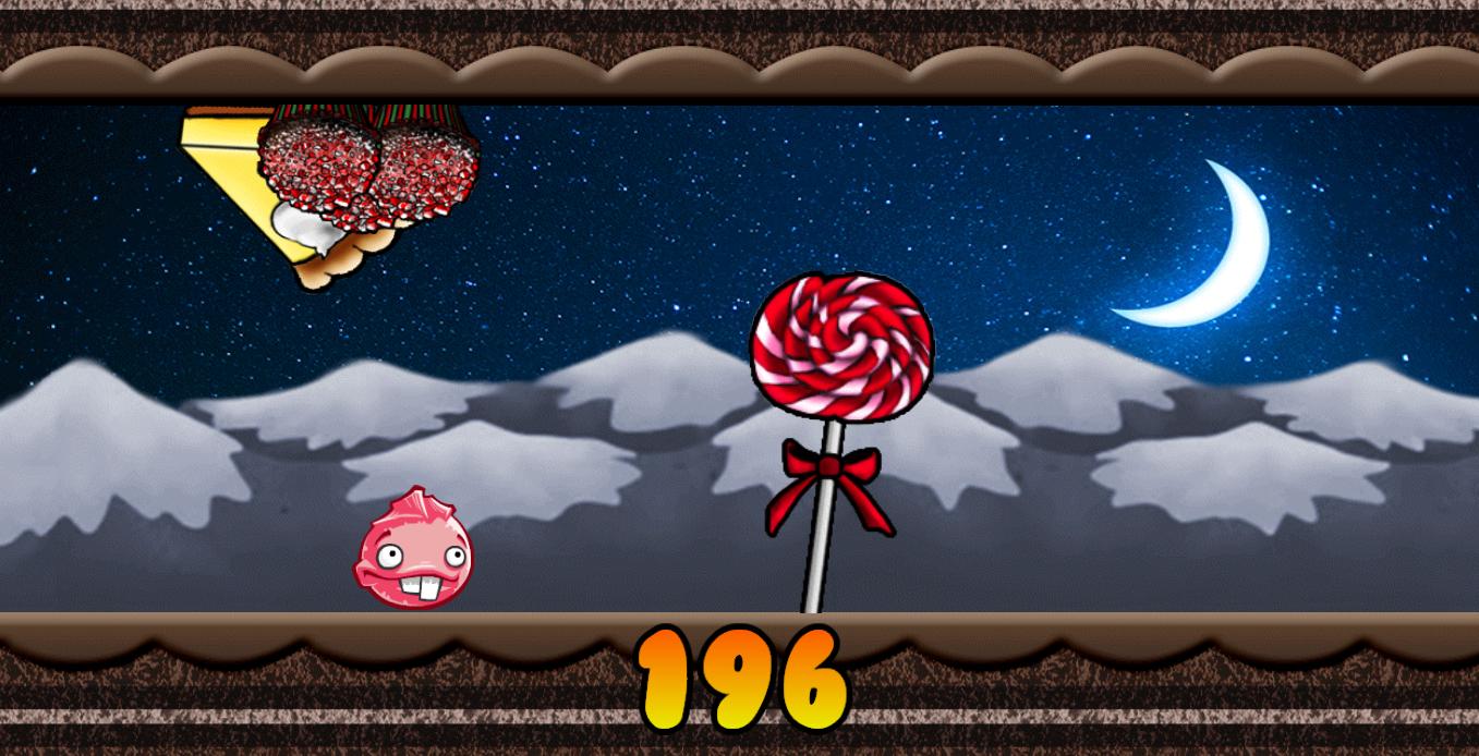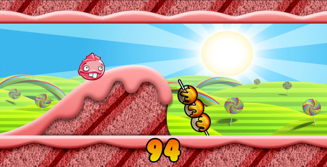 Controle goma com o dedo. Evite todos os doces pulando entre o teto e o chão.