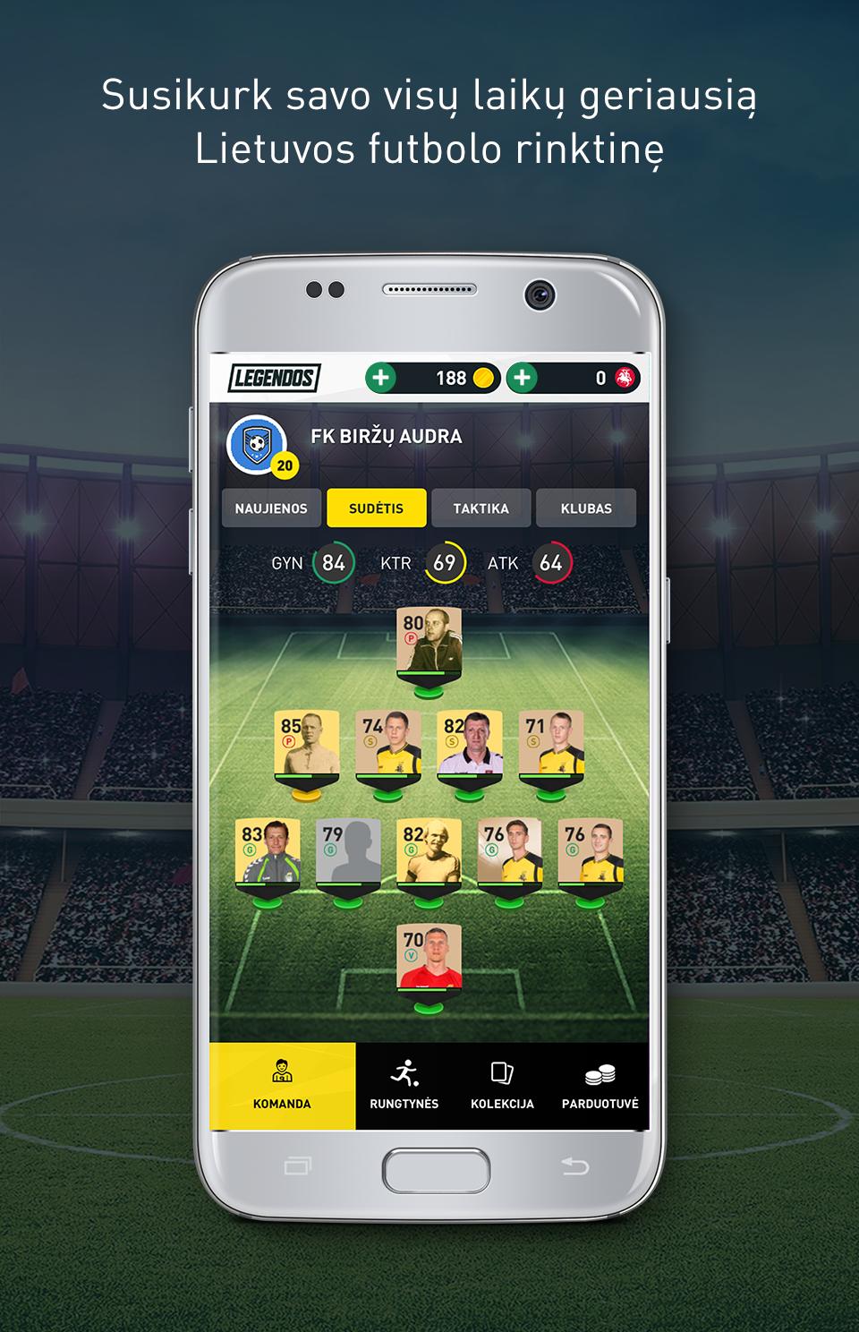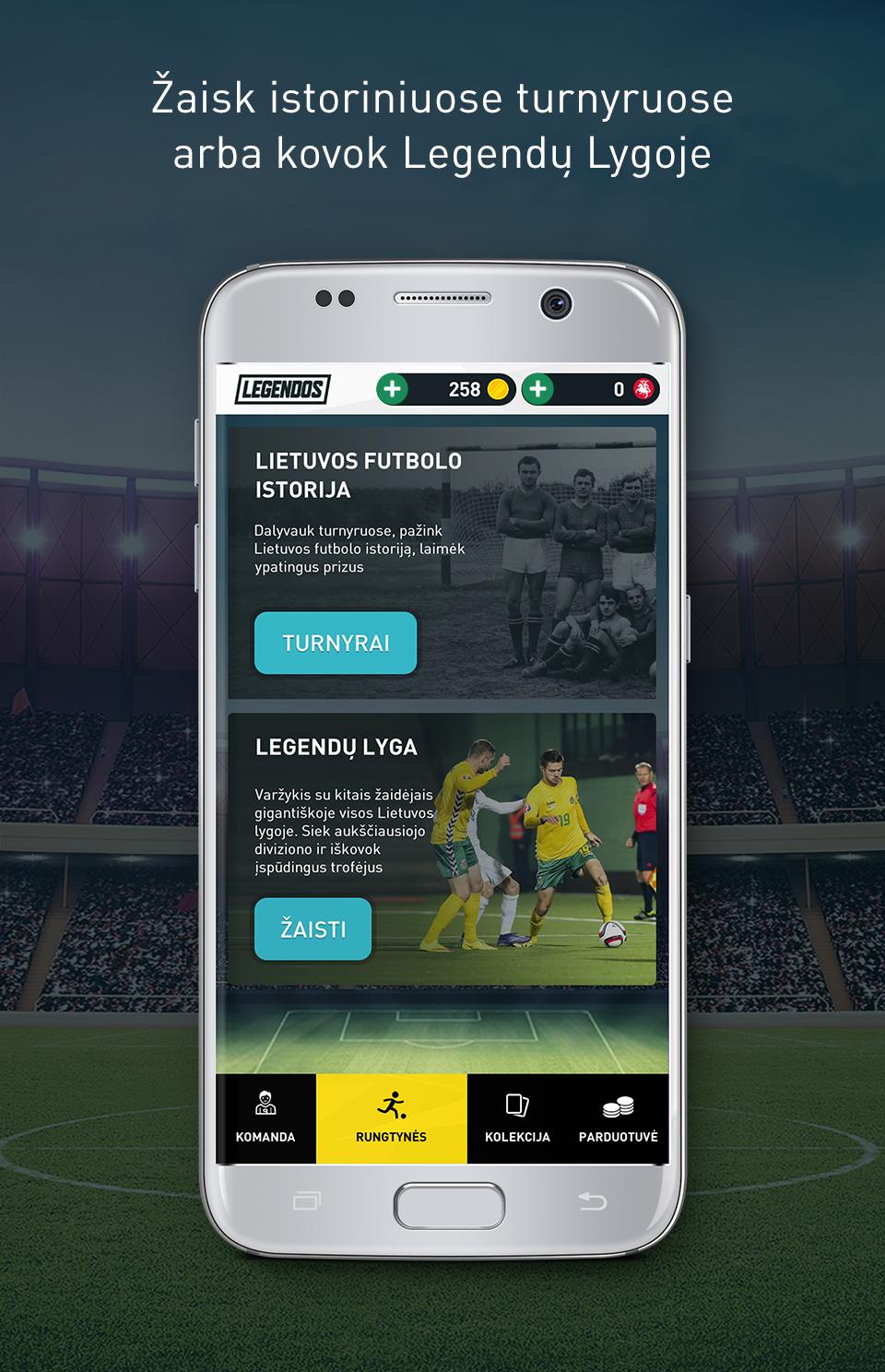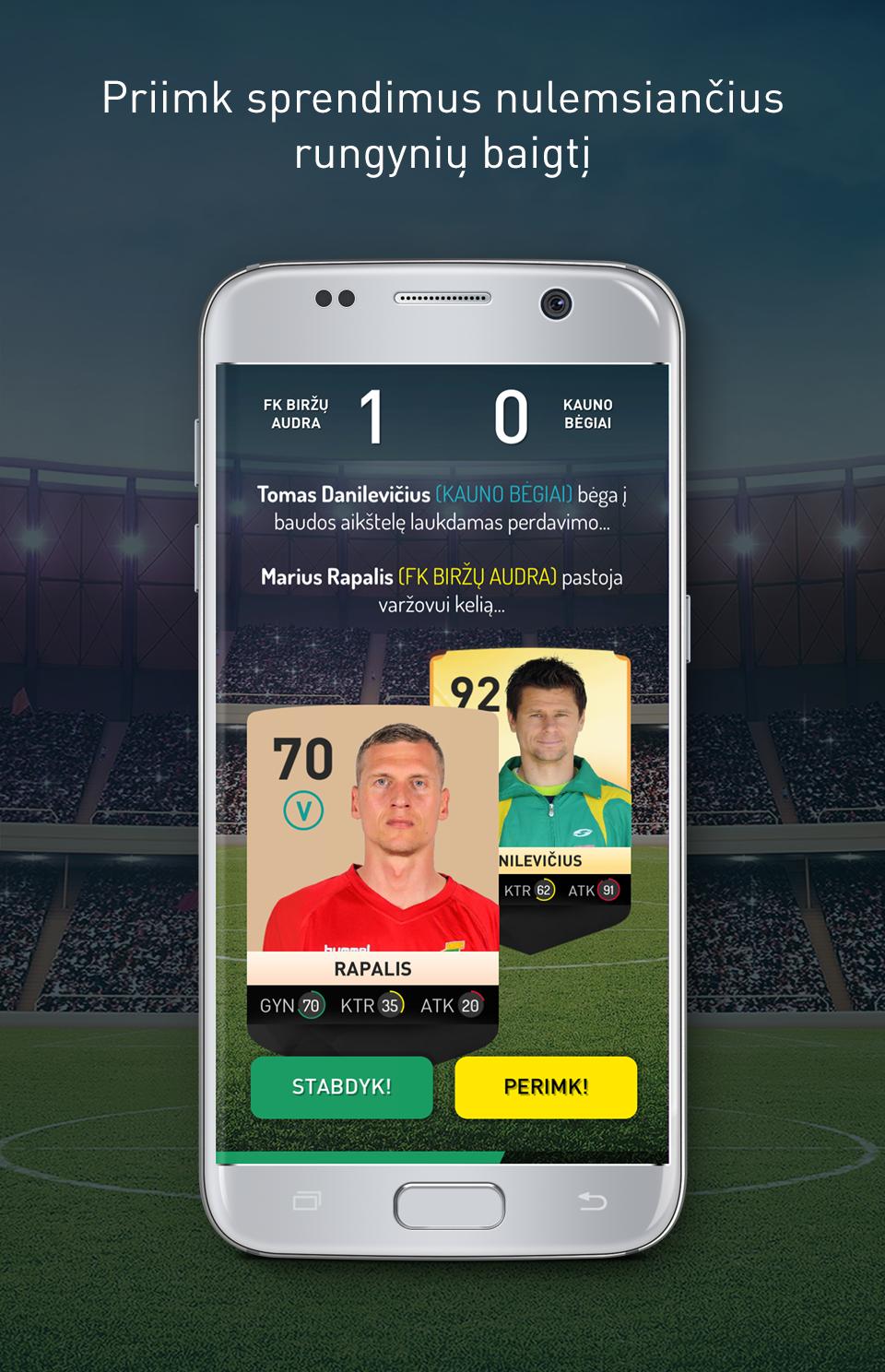 O futebol lituano se move para o espaço virtual. Estrelas de futebol passadas e presentes jogarão entre si para descobrir o nome do time mais forte. Você terá a oportunidade de brincar com atletas lendários que fazem o nome do país agora e no passado.