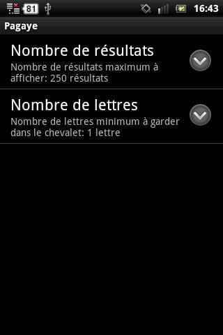 Pagaye é um aplicativo francês que permite encontrar palavras de um conjunto de letras e brincadeiras. Será o seu parceiro ideal para seus jogos Scrabble e quaisquer outras palavras.