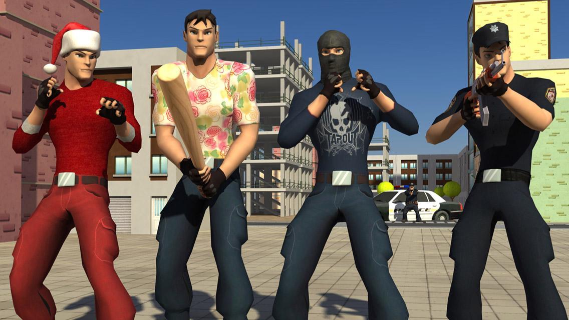 Você pode escolher qualquer rolo neste jogo, como Papai Noel, terrorista profissional, copo de perigo e garoto de Bad City.