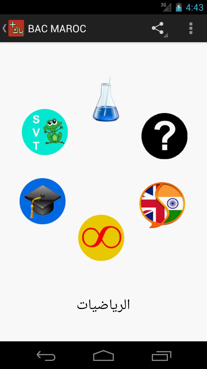 BAC-это совершенно свободная марокканская марокканская реализация, все в одном, исключительно на арабском языке, посвященная студентам, чтобы подготовить свои научные баккалавриаты BAC Morocco предлагает все материалы для прохождения дня национального экзамена бакалавриата, 5 я означает, что пять основных субъектов, а также математики, физики и химики, наук о жизни и земных, философии и английского языка.
