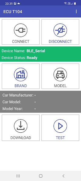 Приложение предлагает возможность настройки устройства ECU T104 . Вы сможете выбрать производителя транспортных средств и моделировать и загрузить конфигурацию для этого автомобиля на устройство ECU T104 .