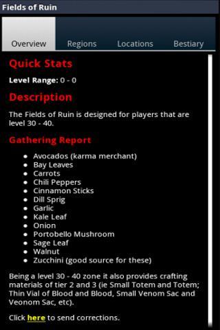* Создание- просмотрите различные навыки ремесла и просмотрите предметы и рецепты, которые они могут создать