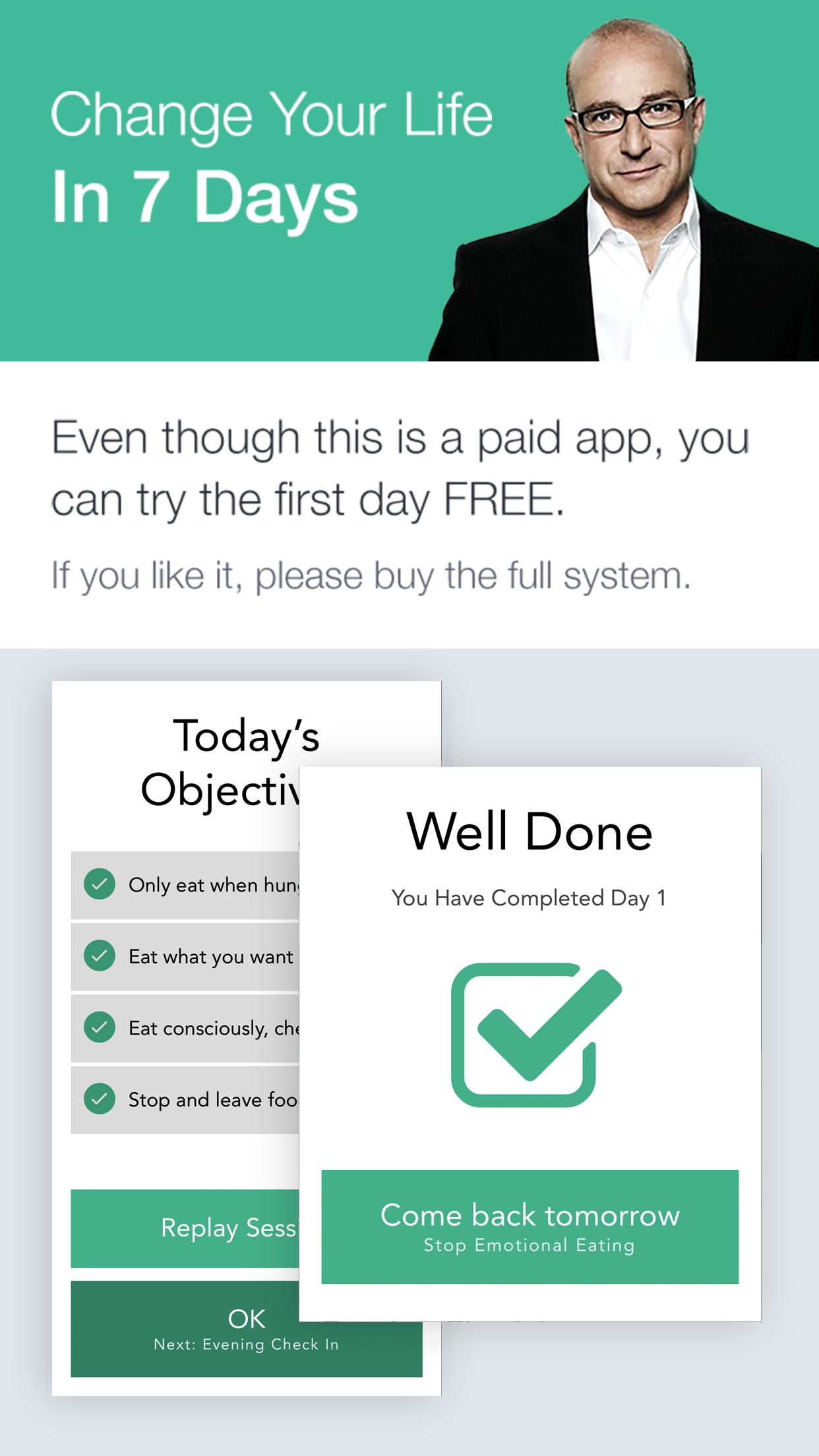 Это приложение предназначено для психологической перезагрузки вашей жизни, изменяя ваши мысли, привычки и модели, связанные с потерей веса, уверенностью и сна. В течение семи дней, изменяющих жизнь, я буду служить интерактивным виртуальным гипнотерапевтом, гидом и наставником, с индивидуальным коучингом для удовлетворения ваших потребностей.