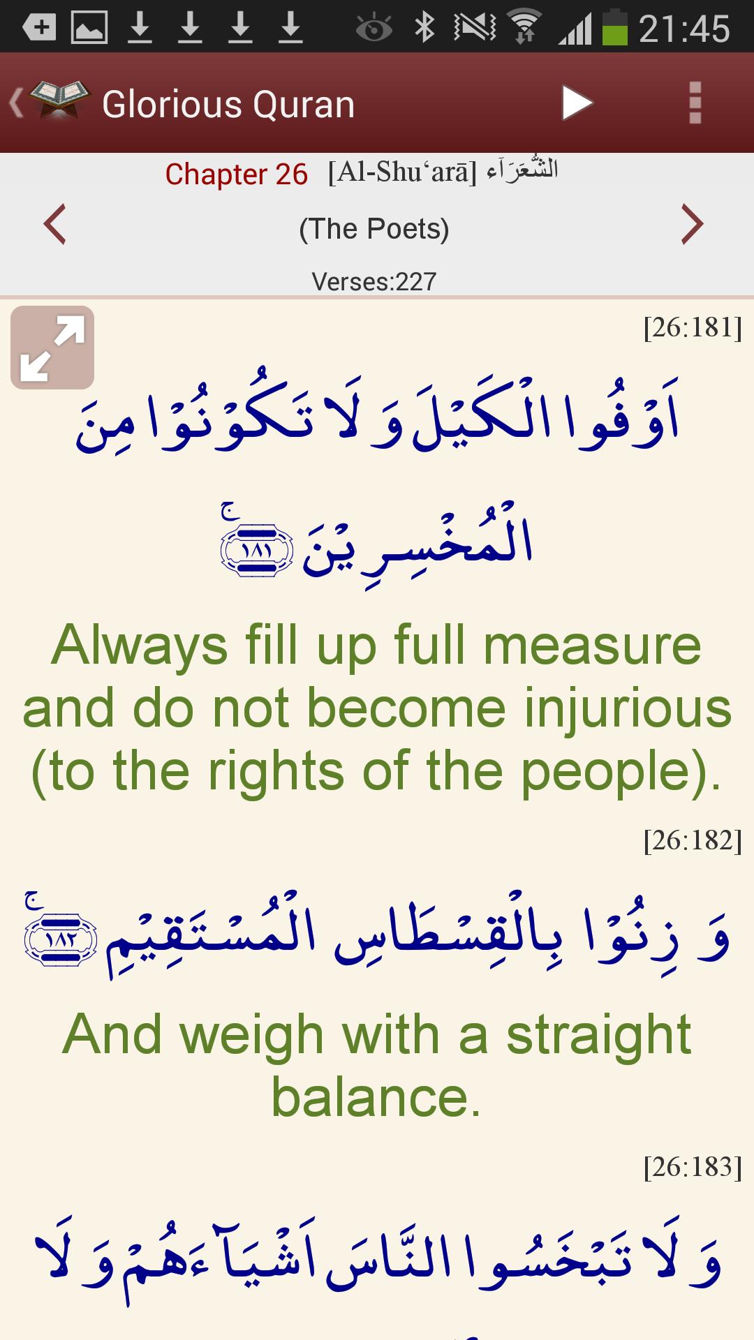 Славный Коран-это интерактивное применение Священного Корана на английском языке, состоящем из прекрасного перевода Шейх-уль-Ислама доктором Мухаммеда Тахир-уль-Кадри, известного как Ирфан-уль-Куран. Это полностью объяснительный перевод на современный и доступный английский (наряду с урду и другими языками*), который в то же время поддерживает строгую лингвистическую точность в отношении первоначального арабского языка.