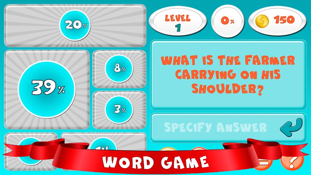 Викторина без Интернета 94 процента содержит много интересных уровней. Для всех вопросов вам нужно попытаться ввести ответы, которые ввели другие пользователи. Например, у вас есть вопрос: «объект в ванной» - ответы будут: зубная щетка, полотенце, мыло, шампунь и т. Д. То есть вам нужно ввести не правильный ответ, а то, что думают другие люди. Каждое слово имеет свой собственный процент, ваша задача состоит в том, чтобы набрать требуемое количество очков для уровня, а затем будет считаться пройденным. 90 процентов не позволяют вам открывать другой уровень. В играх логической ассоциации 94 процента ответов не являются однозначными, поэтому вам нужно хорошее воображение, логика и изобретательность. У игрока всегда есть доступ к 5 открытым уровням, когда он проходит один из них, ему становится доступный другой уровень. В начале игры начинаются 150 игровых монет, дают на ум, когда вы проходите один уровень, вы все равно можете заработать от 50 до 120 монет. Есть подсказки в интеллектуальных интеллектуальных играх, которые вы можете использовать в любое время. Вы можете открыть ответ для игровых монет или для просмотра рекламы.