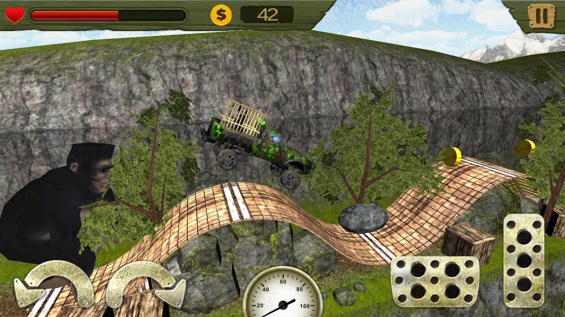 Это не простая гоночная игра, а интересная загадка балансировки в 3D: контролировать свою машину, подняться на холмы - дорога действительно плохая, и горилла может поймать вас! Это действительно зол, поэтому постарайтесь уехать как можно быстрее.