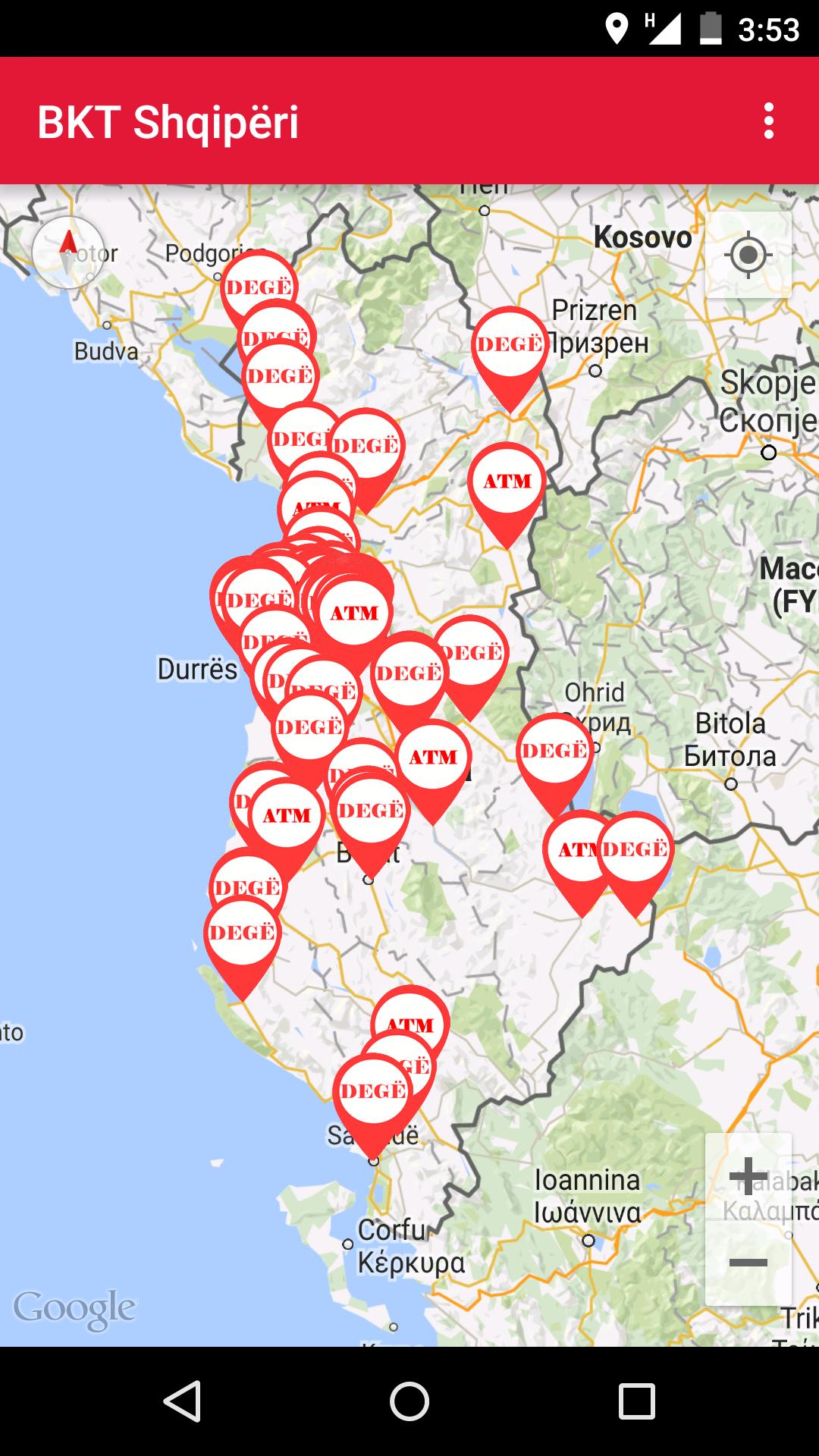 คุณสามารถค้นหาและนำทางได้ที่ทุกสาขาและตู้เอทีเอ็มของธนาคารธนาคารแห่งชาติในทุกช่วงเวลาและที่ที่คุณใช้โดยใช้แอพ BKT Navigator , Eather ในแอลเบเนียหรือในโคโซโว