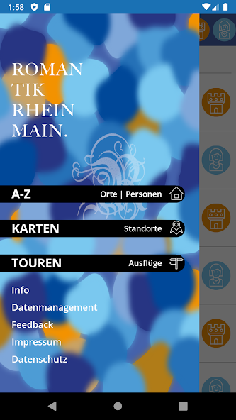 "Romantic Rhine Main" ใหม่พร้อมการนำทางง่าย ๆ สร้างขึ้นในเวอร์ชันก่อนหน้า "Impulse Romantic" มันถูกตีพิมพ์ในปี 2013 โดยรัฐและสวนที่ได้รับการสนับสนุนทางการเงินจาก Kulturfonds 'Frankfurt Rheinmain พิพิธภัณฑ์โรแมนติกของเยอรมันในแฟรงค์เฟิร์ตแอมมีส่วนร่วมในการเปิดตัวแอพในปี 2563 ในแง่ของความร่วมมือนี้ได้รับการปรับปรุงในแง่ของเนื้อหาและยังคงติดตามในครั้งนี้
