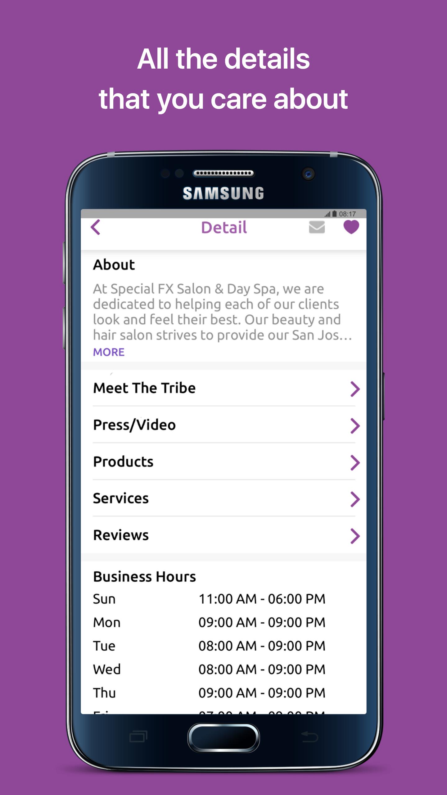 ผู้บริโภคด้านความงามสามารถเรียนรู้เกี่ยวกับร้านเสริมสวยสปาและร้านตัดผมในพื้นที่ของพวกเขาและนัดหมายหนังสือกับผู้เชี่ยวชาญด้านความงาม