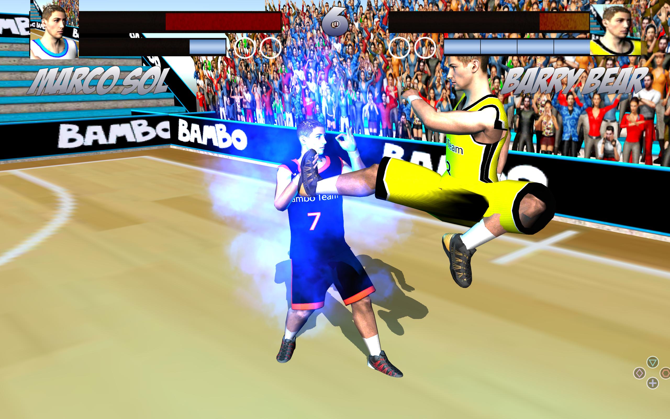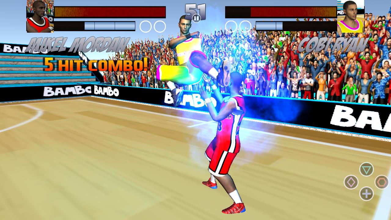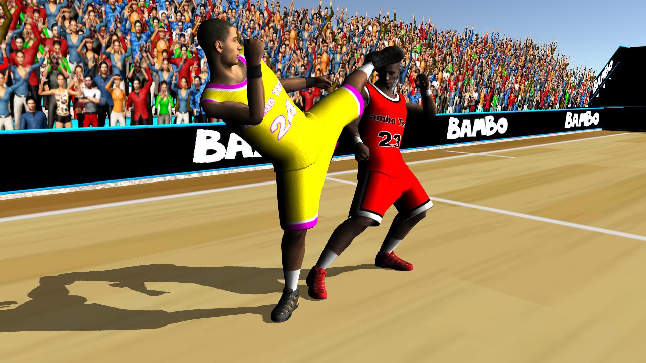 เกมนี้ไม่ได้เป็นการแข่งขันสามครั้ง ผู้เล่นบาสเก็ตบอลสองคนมีส่วนร่วมในการต่อสู้คอมโบหลายคอมโบเพื่อเอาชนะศัตรูของคุณคลื่นสำคัญศิลปะการต่อสู้คาราเต้คาราเต้มวยเตะกลอุบายหลายพันคนและการผสมผสานระหว่างการเตะการโจมตีทางอากาศการเตะหลายครั้ง