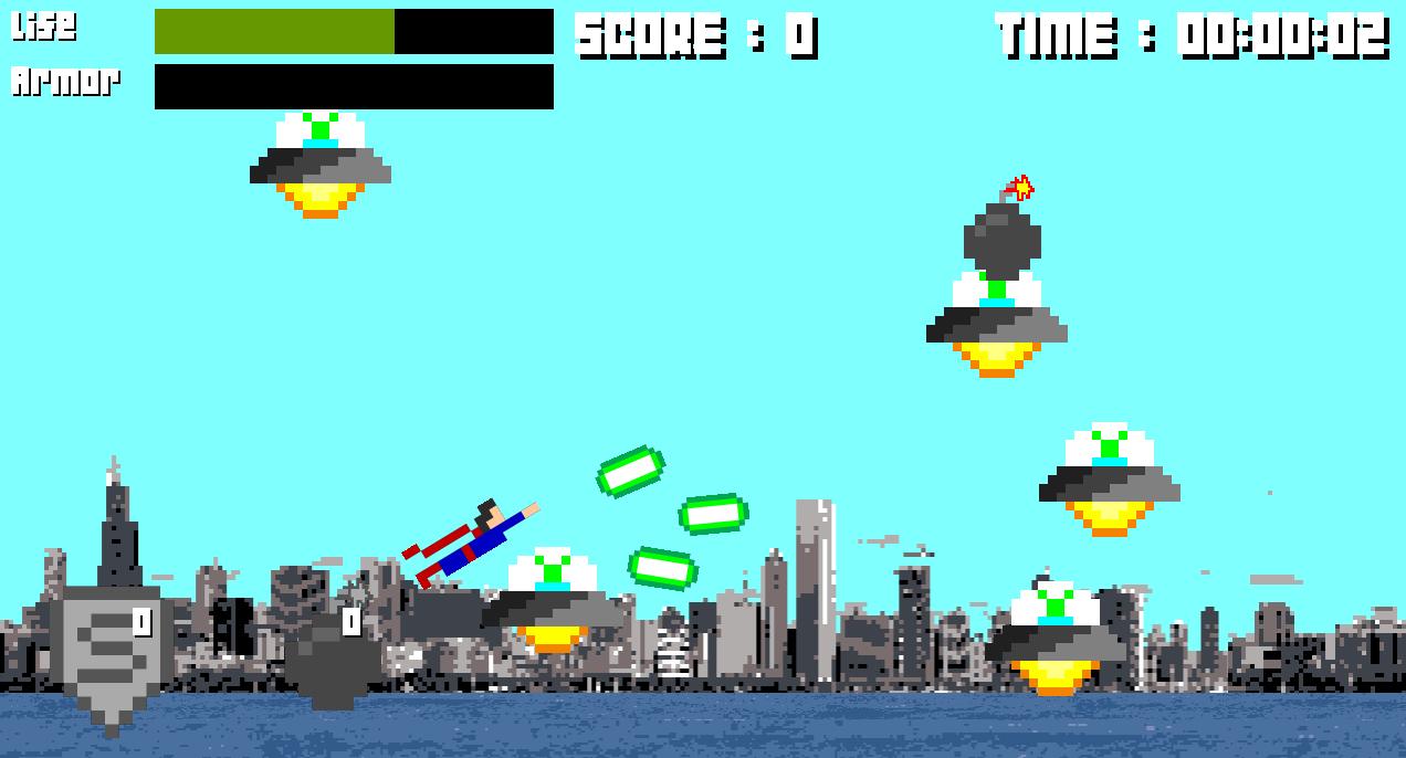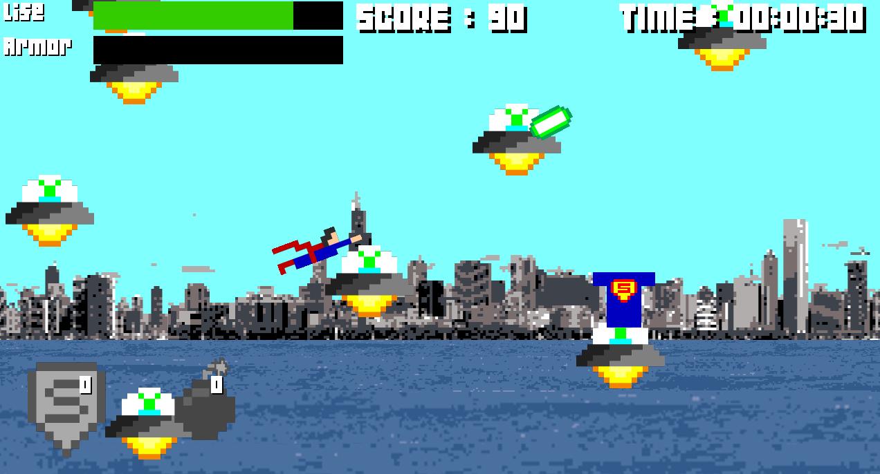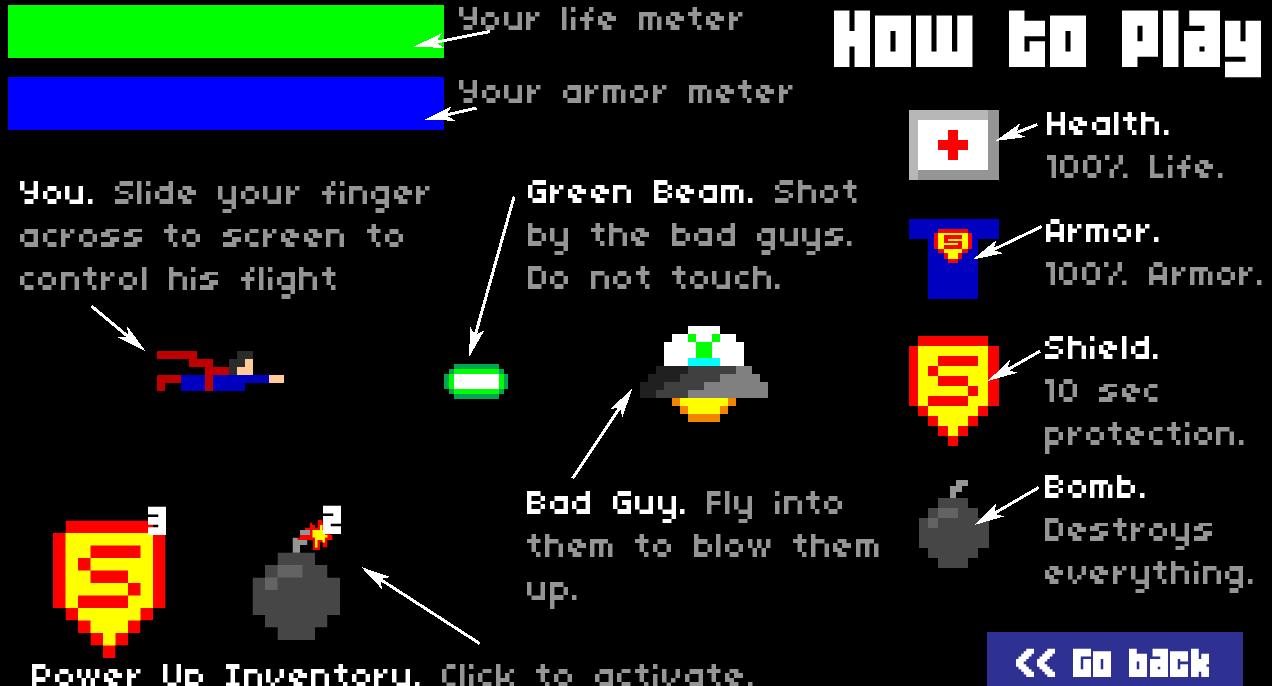ปัดข้ามหน้าจอของคุณเพื่อควบคุมเส้นทางการบินของคลาร์กในขณะที่เขาเผชิญหน้ากับศัตรูที่ดุร้ายที่สุดในโลก - มนุษย์ต่างดาว! ไม่ใช่ประเภท Ridley Scott ชนิดที่มีความรู้สึกและนั่งอยู่ในยูเอฟโอถ่ายคานสีเขียว (คลาร์กยืนยันว่าสิ่งเหล่านั้นไม่ใช่คานคริปทอนไนท์)