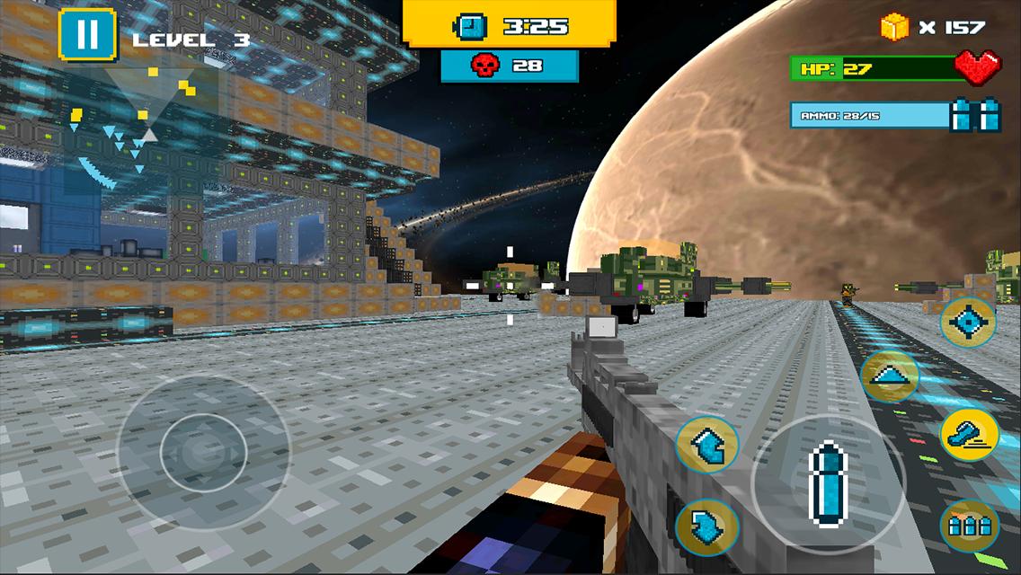ในเกมคุณมีปืนสำหรับเตรียมตัวสำหรับการกระทำ FPS ที่ดุเดือด คุณไปที่การนำทางในโลก 3D พิกเซล ในเกมนี้มีสไตล์การเล่นที่ใช้งานง่ายซึ่งมาพร้อมกับการควบคุมที่เรียบง่ายและบนแผ่นรองสำหรับการต่อสู้ด้วยความลื่นไหลและการเลือกระหว่างอาวุธ ในขณะที่คุณทำเกมให้สำเร็จในแต่ละระดับคุณสามารถได้รับอาวุธยุคใหม่สำหรับการต่อสู้กับศัตรูที่อันตรายถึงชีวิต