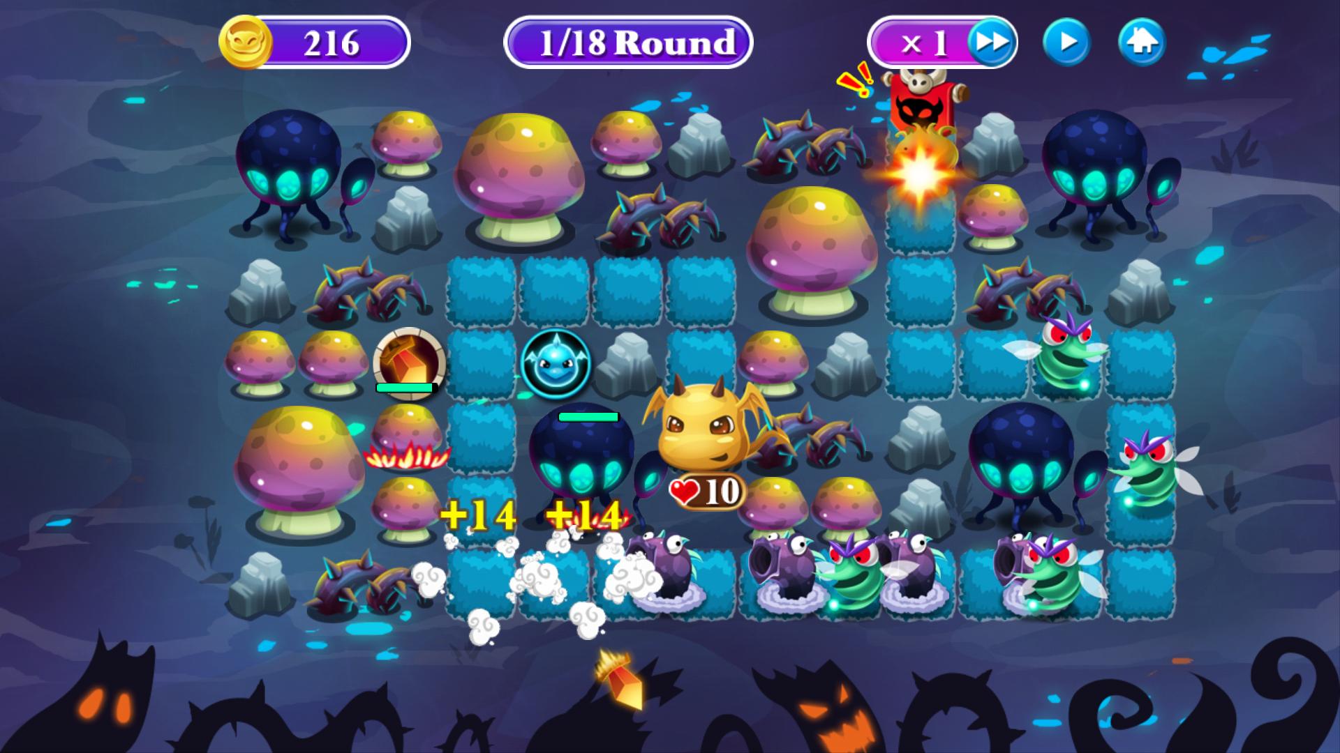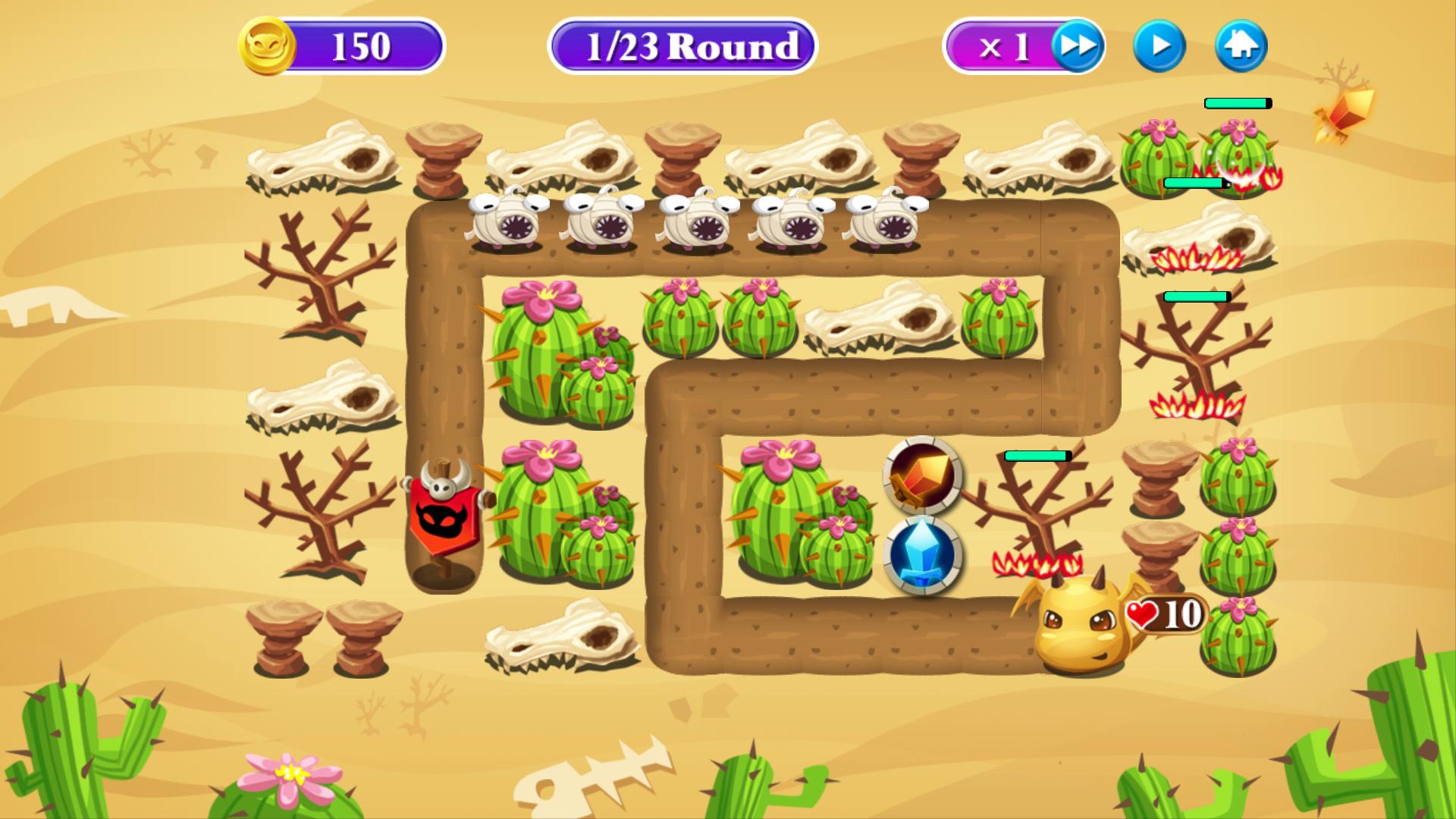 ในเกมผู้เล่นจำเป็นต้องสร้างหอคอยป้องกันบนเส้นทางเดินขบวนของสัตว์ประหลาด