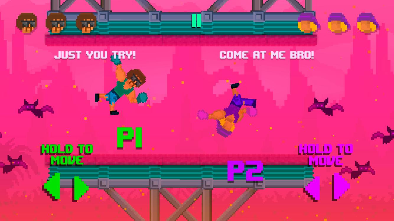 เอาชนะเพื่อนของคุณในการต่อสู้ MMA แบบหนึ่งต่อหนึ่งหรือทดสอบทักษะของคุณกับผู้เล่น CPU ที่ทรงพลัง! WRESTLE, KICK และต่อยคู่ต่อสู้ของคุณออกจากแพลตฟอร์มและเข้าไปในลาวาด้านล่าง!