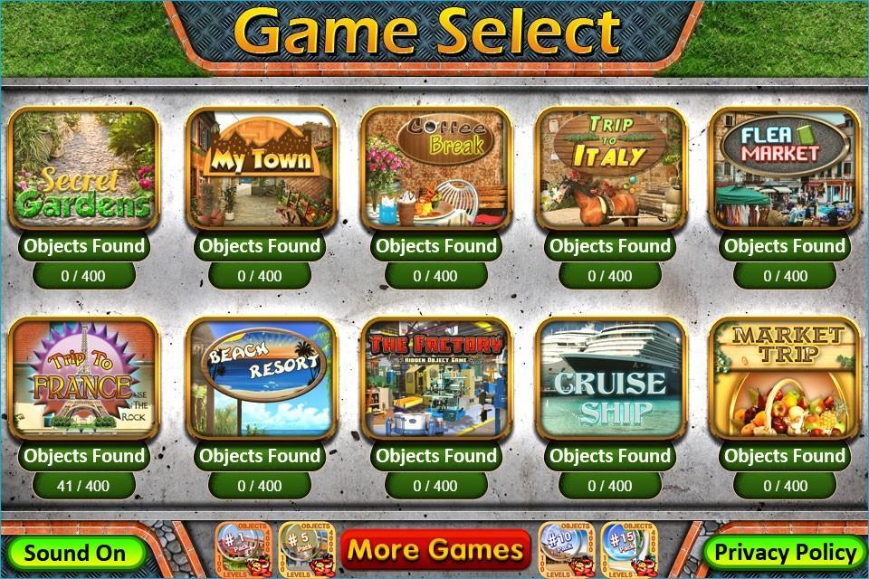 10 เกมวัตถุที่ซ่อนอยู่ในหนึ่งแพ็ค = 100 ระดับและ 4000 วัตถุที่ซ่อนอยู่