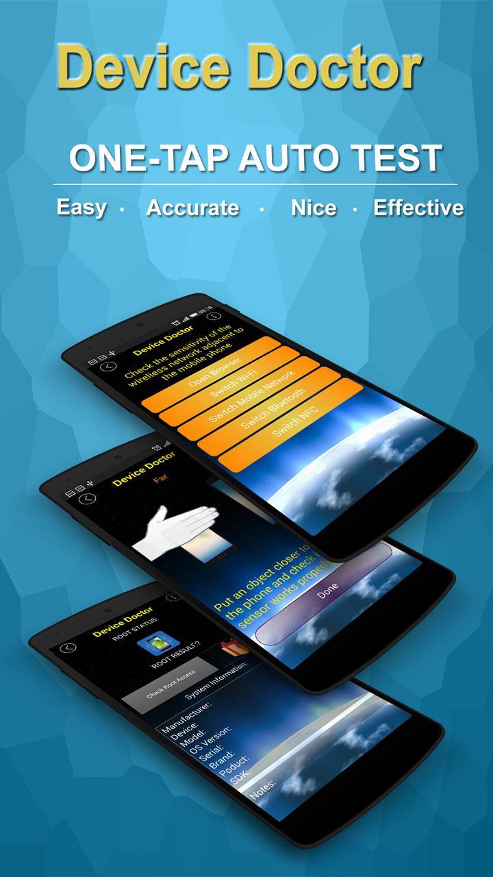 您购买新手机或购买旧平板电脑,您不确定所有功能是否正常工作?请使用我们的产品“ Device Doctor ” - “手机医生”。这是一种全新的产品,可让您检查所有功能,软件,硬件设备,例如:屏幕,相机,传感器,能量,电源...。