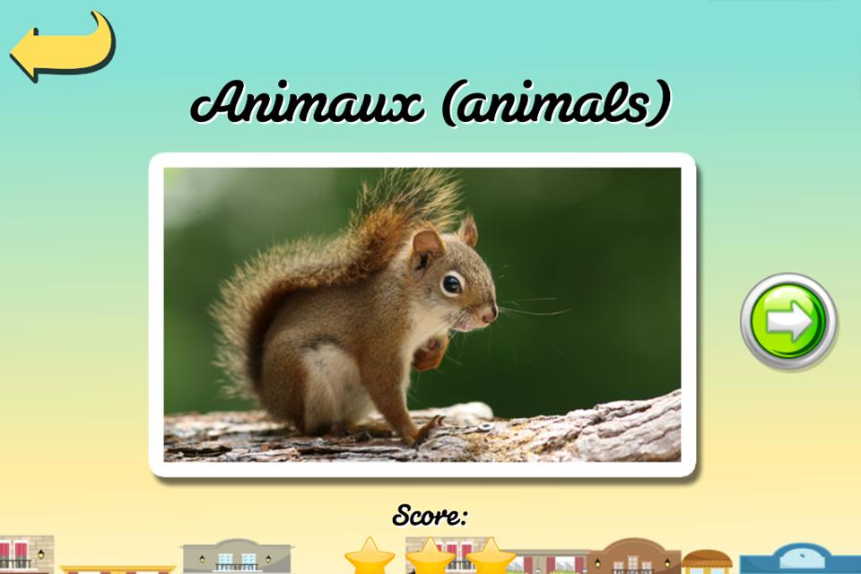 从十二个不同的单词类别中进行选择,包括:动物,学校,户外,工具,交通,蔬菜,位置,运动,音乐,形状和运动。根据所说的法语单词从四个(或两个(如果四个)太难)中选择正确的图片。为了协助您的选择,您还可以选择听取单词的英文版本。根据您做出的正确和不正确的答案的数量,在每个游戏结束时颁发了星星。尝试通过在每个类别中获得完美的3星来掌握所有12个单词类别。