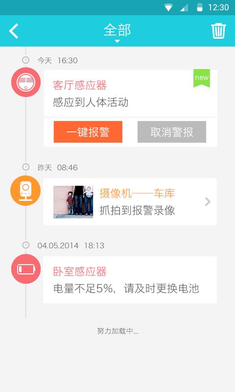 2.实时报警:配合多种感应器,将特殊人体活动、异常环境等消息推送至手机,助您及时发现安全隐患。