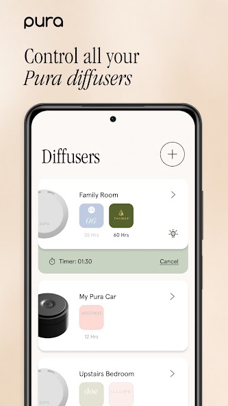 只需插入扩散器,将其设置在应用程序中,然后让高端清洁的香水可增强所有空间和心情。 Pura应用程序允许您控制气味强度,使用自定义时间表和计时器,环境浅色的扩散时间,并具有可选的外观模式。