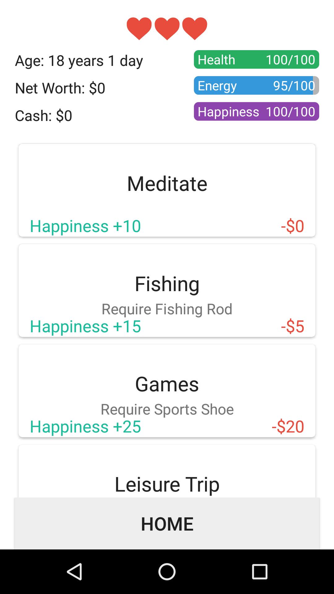 零与亿万富翁是一个简单的基于单击的角色扮演游戏。您扮演一个18岁的角色,手持$ 0,无家可归。您只有一个梦,成为亿万富翁!