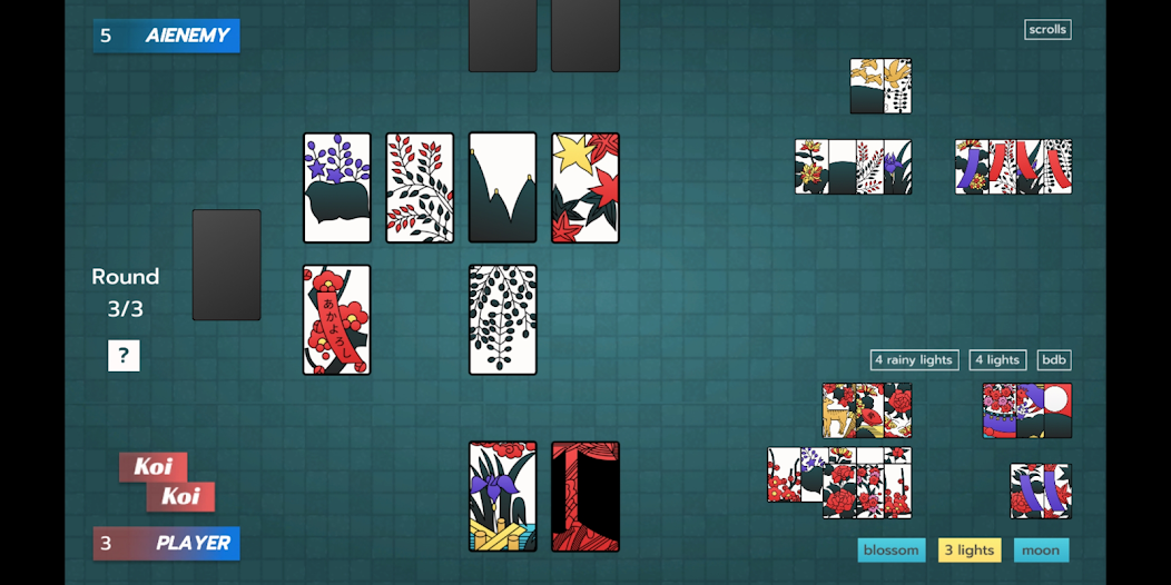 玩Koi-koi,这是一款使用传统的日本Hanafuda卡游戏玩的游戏。