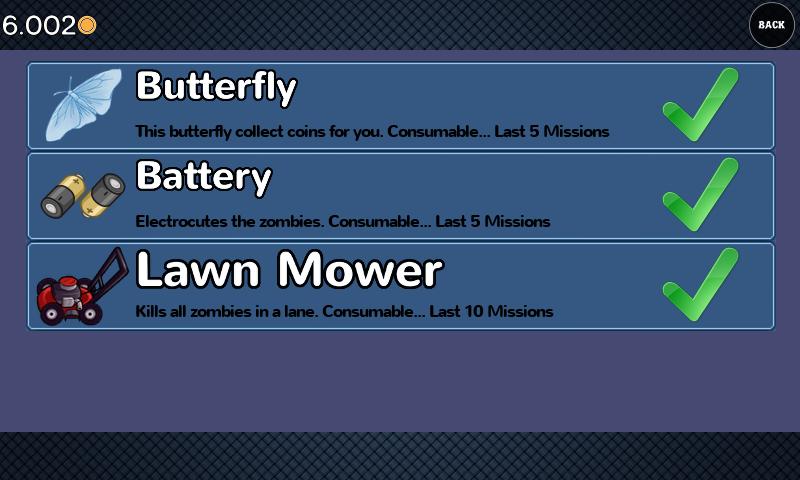 - 割草机:这些切割机将帮助您阻止僵尸,这将试图带您消除动力。您每回合只有4个割草机,您可以持续5圈。